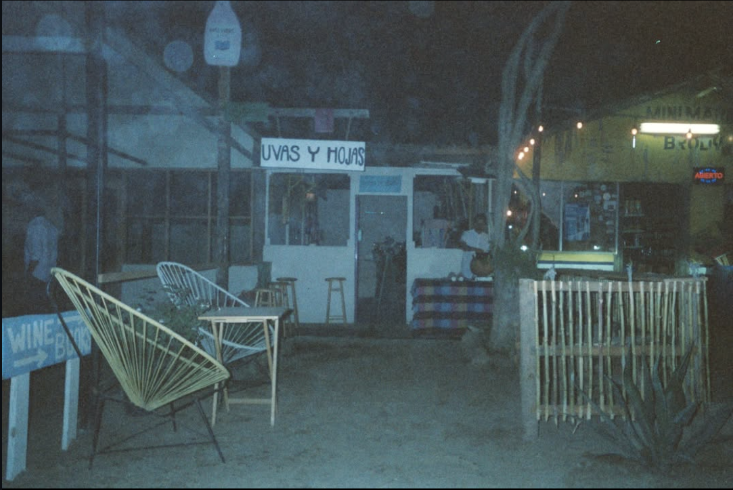 Uvas y Hojas es un proyecto de Sandra Reyna, Paco Oropeza y Dominic Bracco II. Nuestro primer espacio fue construido con materiales reciclados en 2021, ubicado entre dos palapas sobre la calle principal hacia la playa Los Cerritos. Abrimos con la intención de crear una librería y centro cultural en El Pescadero, Baja California Sur, México.